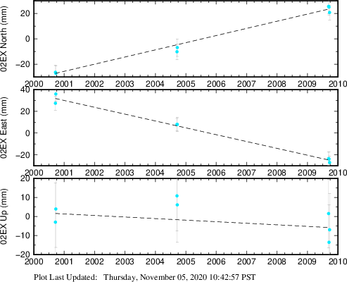 These results are preliminary. The station positions are unchecked and should not be used for any engineering applications. There may be errors in the antenna heights. The velocities are very dependent on the length of the span of observations. The presence of outliers (errant observations) sometimes contaminates the velocities.