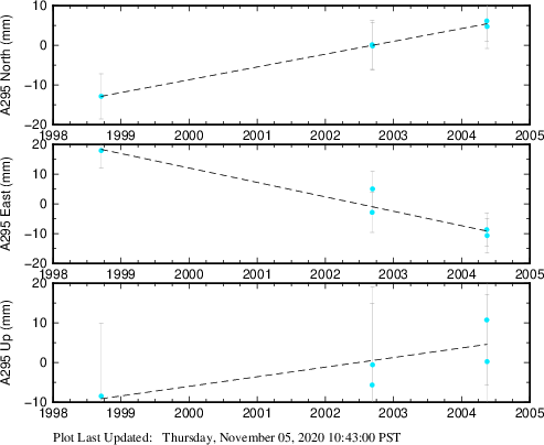 These results are preliminary. The station positions are unchecked and should not be used for any engineering applications. There may be errors in the antenna heights. The velocities are very dependent on the length of the span of observations. The presence of outliers (errant observations) sometimes contaminates the velocities.