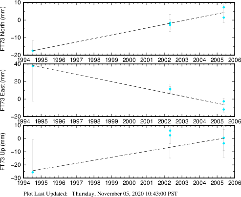 These results are preliminary. The station positions are unchecked and should not be used for any engineering applications. There may be errors in the antenna heights. The velocities are very dependent on the length of the span of observations. The presence of outliers (errant observations) sometimes contaminates the velocities.