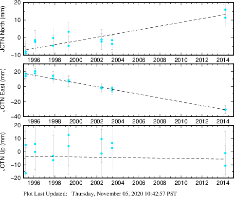 These results are preliminary. The station positions are unchecked and should not be used for any engineering applications. There may be errors in the antenna heights. The velocities are very dependent on the length of the span of observations. The presence of outliers (errant observations) sometimes contaminates the velocities.