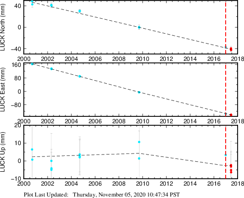 These results are preliminary. The station positions are unchecked and should not be used for any engineering applications. There may be errors in the antenna heights. The velocities are very dependent on the length of the span of observations. The presence of outliers (errant observations) sometimes contaminates the velocities.
