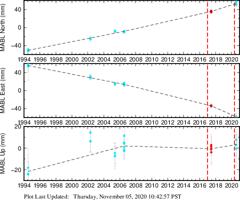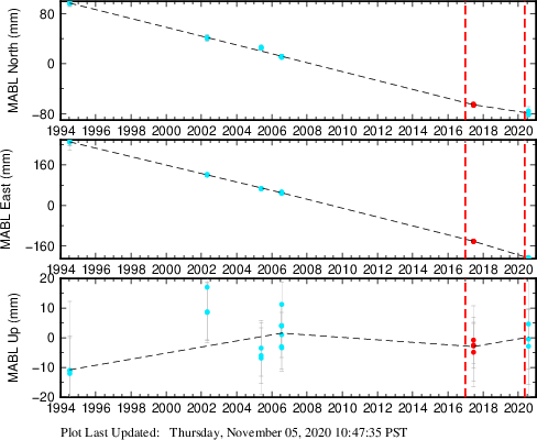 These results are preliminary. The station positions are unchecked and should not be used for any engineering applications. There may be errors in the antenna heights. The velocities are very dependent on the length of the span of observations. The presence of outliers (errant observations) sometimes contaminates the velocities.