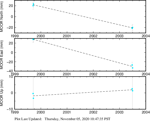 These results are preliminary. The station positions are unchecked and should not be used for any engineering applications. There may be errors in the antenna heights. The velocities are very dependent on the length of the span of observations. The presence of outliers (errant observations) sometimes contaminates the velocities.