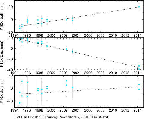 These results are preliminary. The station positions are unchecked and should not be used for any engineering applications. There may be errors in the antenna heights. The velocities are very dependent on the length of the span of observations. The presence of outliers (errant observations) sometimes contaminates the velocities.