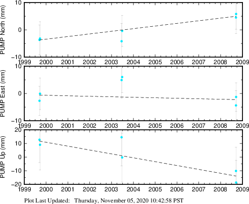 These results are preliminary. The station positions are unchecked and should not be used for any engineering applications. There may be errors in the antenna heights. The velocities are very dependent on the length of the span of observations. The presence of outliers (errant observations) sometimes contaminates the velocities.