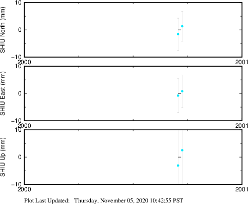 These results are preliminary. The station positions are unchecked and should not be used for any engineering applications. There may be errors in the antenna heights. The velocities are very dependent on the length of the span of observations. The presence of outliers (errant observations) sometimes contaminates the velocities.