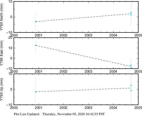These results are preliminary. The station positions are unchecked and should not be used for any engineering applications. There may be errors in the antenna heights. The velocities are very dependent on the length of the span of observations. The presence of outliers (errant observations) sometimes contaminates the velocities.