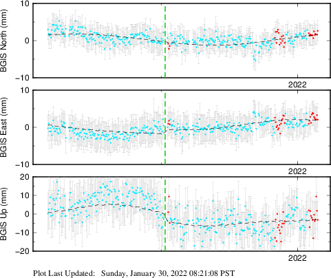 | Decimal date | N offset (mm) | N uncertainty (mm) | E offset (mm) | E uncertainty (mm) | U offset (mm) | U uncertainty (mm) | Type | Earthquake magnitude | Earthquake information | Distance from epicenter (km) | |