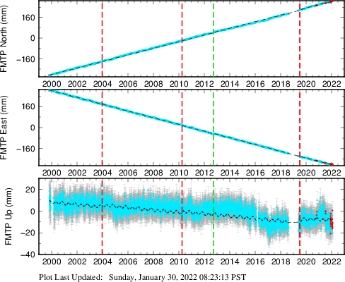 | Decimal date | N offset (mm) | N uncertainty (mm) | E offset (mm) | E uncertainty (mm) | U offset (mm) | U uncertainty (mm) | Type | Earthquake magnitude | Earthquake information | Distance from epicenter (km) | |