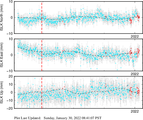 | Decimal date | N offset (mm) | N uncertainty (mm) | E offset (mm) | E uncertainty (mm) | U offset (mm) | U uncertainty (mm) | Type | Earthquake magnitude | Earthquake information | Distance from epicenter (km) | |