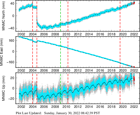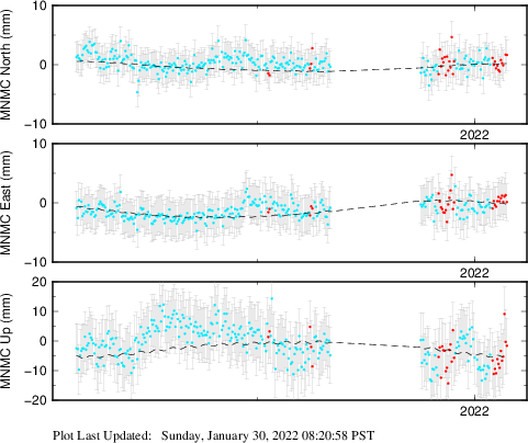 | Decimal date | N offset (mm) | N uncertainty (mm) | E offset (mm) | E uncertainty (mm) | U offset (mm) | U uncertainty (mm) | Type | Earthquake magnitude | Earthquake information | Distance from epicenter (km) | |