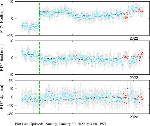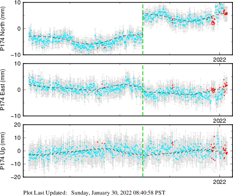 | Decimal date | N offset (mm) | N uncertainty (mm) | E offset (mm) | E uncertainty (mm) | U offset (mm) | U uncertainty (mm) | Type | Earthquake magnitude | Earthquake information | Distance from epicenter (km) | |