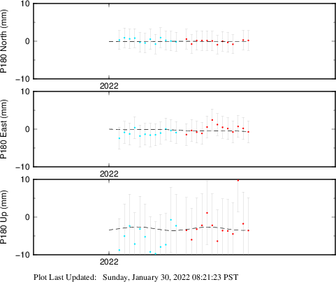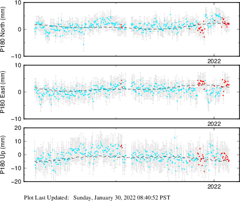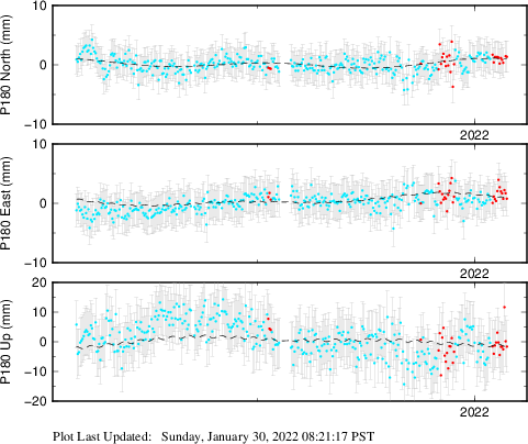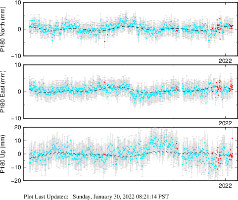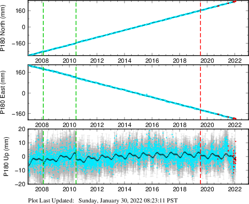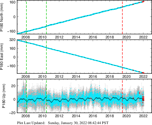 These results are preliminary. The station positions are unchecked and should not be used for any engineering applications. There may be errors in the antenna heights. The velocities are very dependent on the length of the span of observations. The presence of outliers (errant observations) sometimes contaminates the velocities.