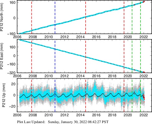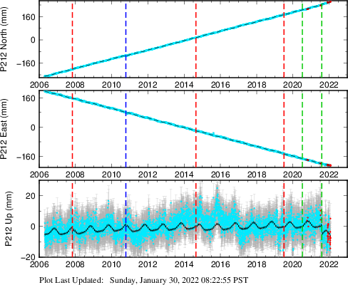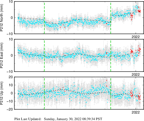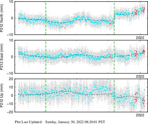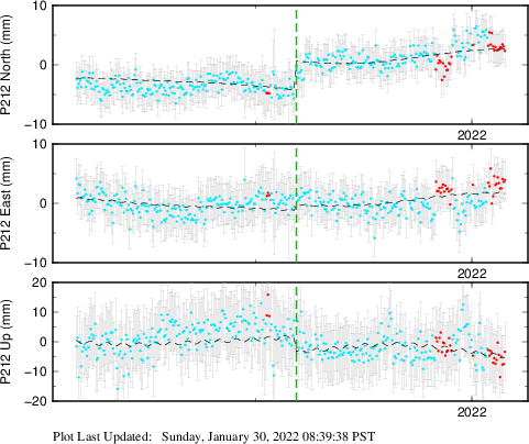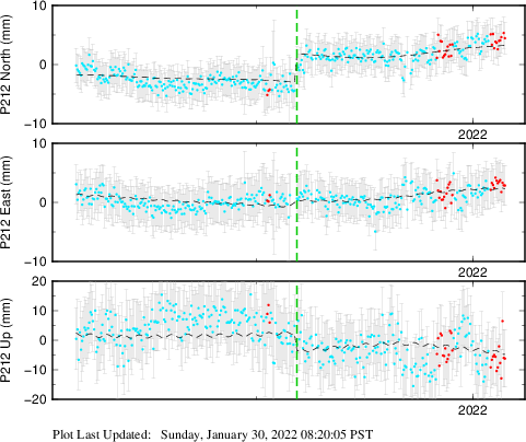| Decimal date | N offset (mm) | N uncertainty (mm) | E offset (mm) | E uncertainty (mm) | U offset (mm) | U uncertainty (mm) | Type | Earthquake magnitude | Earthquake information | Distance from epicenter (km) | |