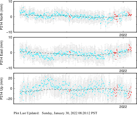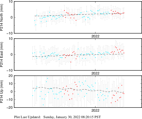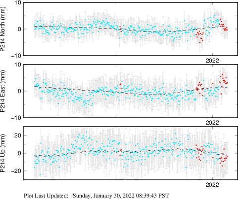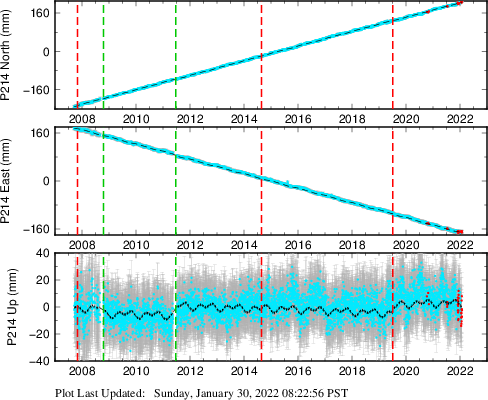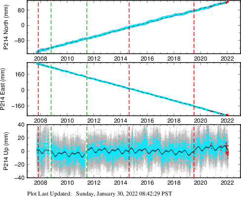 | Decimal date | N offset (mm) | N uncertainty (mm) | E offset (mm) | E uncertainty (mm) | U offset (mm) | U uncertainty (mm) | Type | Earthquake magnitude | Earthquake information | Distance from epicenter (km) | |