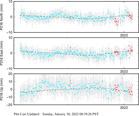 | Decimal date | N offset (mm) | N uncertainty (mm) | E offset (mm) | E uncertainty (mm) | U offset (mm) | U uncertainty (mm) | Type | Earthquake magnitude | Earthquake information | Distance from epicenter (km) | |