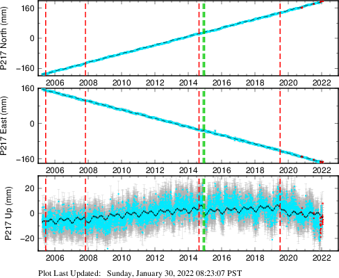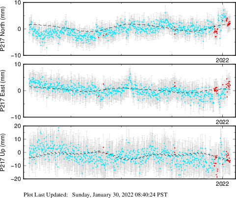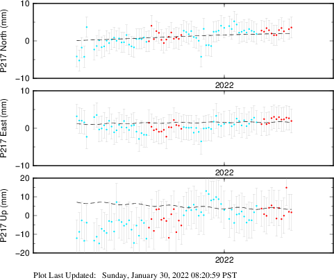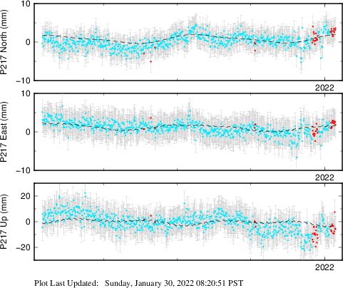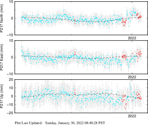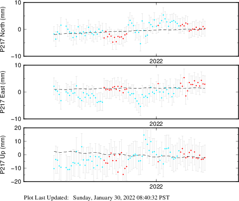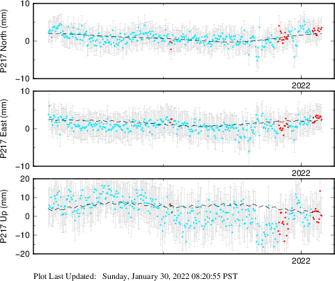 | Decimal date | N offset (mm) | N uncertainty (mm) | E offset (mm) | E uncertainty (mm) | U offset (mm) | U uncertainty (mm) | Type | Earthquake magnitude | Earthquake information | Distance from epicenter (km) | |