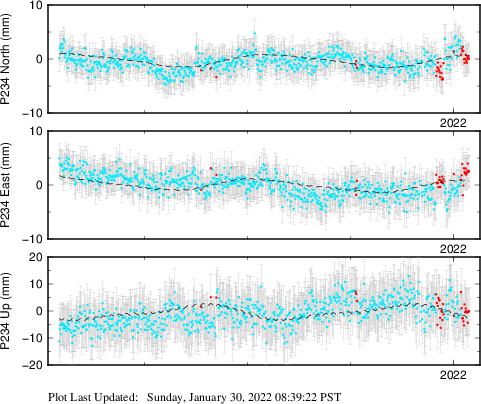| Decimal date | N offset (mm) | N uncertainty (mm) | E offset (mm) | E uncertainty (mm) | U offset (mm) | U uncertainty (mm) | Type | Earthquake magnitude | Earthquake information | Distance from epicenter (km) | |
