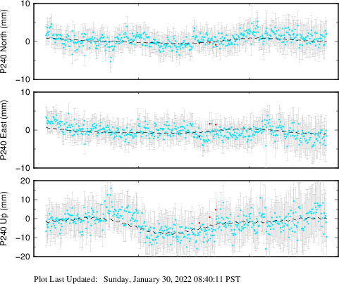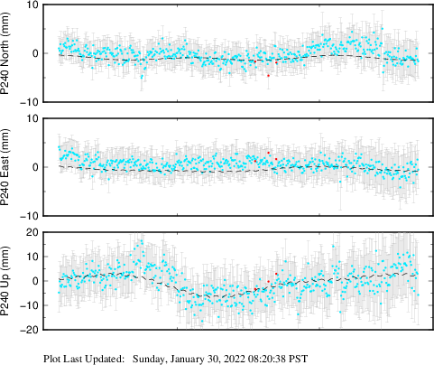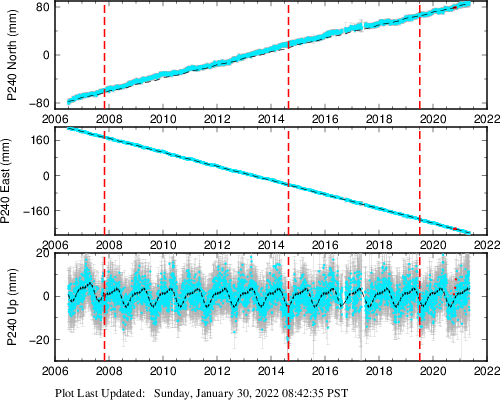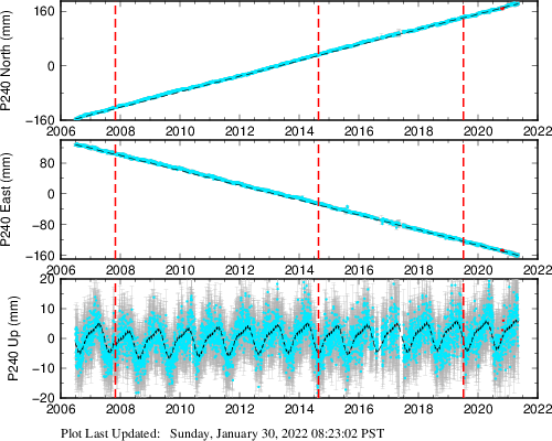 These results are preliminary. The station positions are unchecked and should not be used for any engineering applications. There may be errors in the antenna heights. The velocities are very dependent on the length of the span of observations. The presence of outliers (errant observations) sometimes contaminates the velocities.