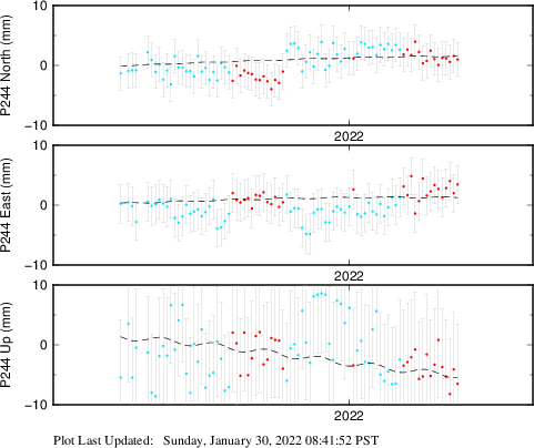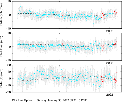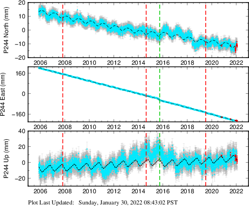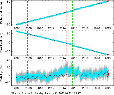 | Decimal date | N offset (mm) | N uncertainty (mm) | E offset (mm) | E uncertainty (mm) | U offset (mm) | U uncertainty (mm) | Type | Earthquake magnitude | Earthquake information | Distance from epicenter (km) | |