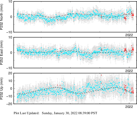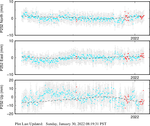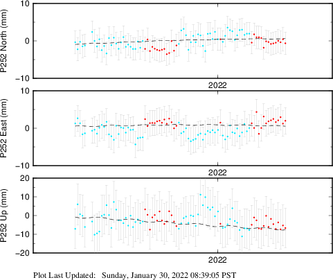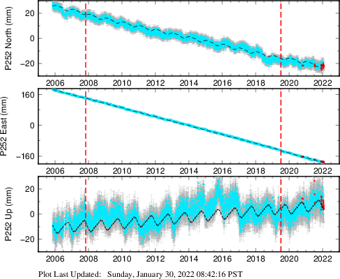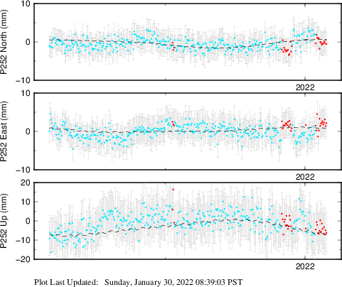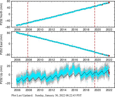 These results are preliminary. The station positions are unchecked and should not be used for any engineering applications. There may be errors in the antenna heights. The velocities are very dependent on the length of the span of observations. The presence of outliers (errant observations) sometimes contaminates the velocities.