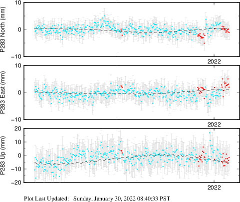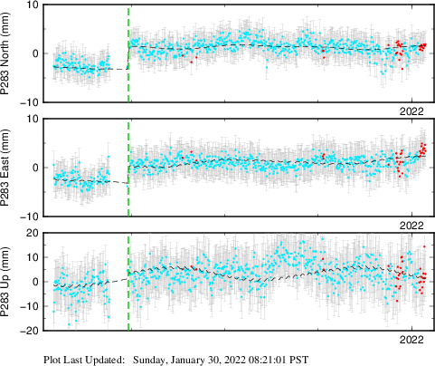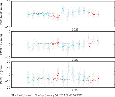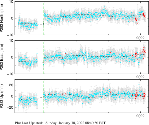 | Decimal date | N offset (mm) | N uncertainty (mm) | E offset (mm) | E uncertainty (mm) | U offset (mm) | U uncertainty (mm) | Type | Earthquake magnitude | Earthquake information | Distance from epicenter (km) | |
