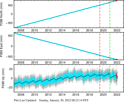 These results are preliminary. The station positions are unchecked and should not be used for any engineering applications. There may be errors in the antenna heights. The velocities are very dependent on the length of the span of observations. The presence of outliers (errant observations) sometimes contaminates the velocities.