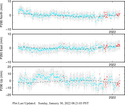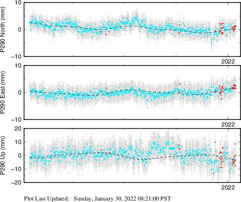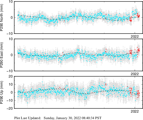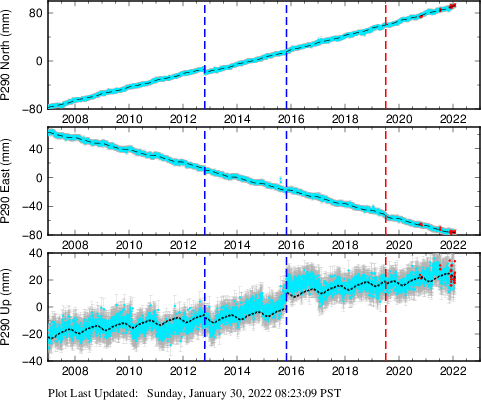 These results are preliminary. The station positions are unchecked and should not be used for any engineering applications. There may be errors in the antenna heights. The velocities are very dependent on the length of the span of observations. The presence of outliers (errant observations) sometimes contaminates the velocities.