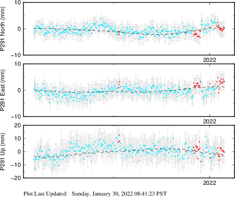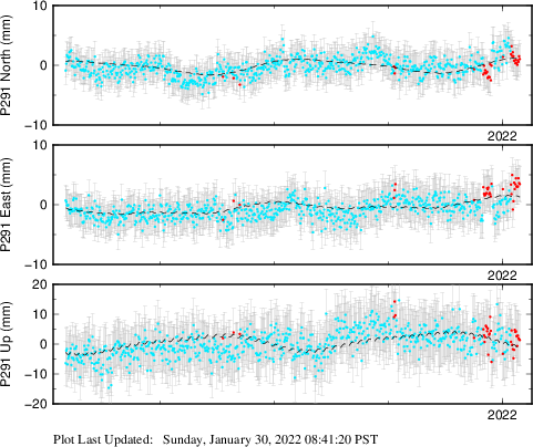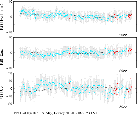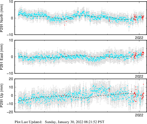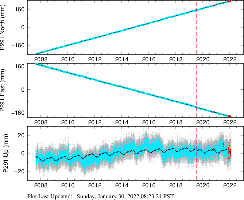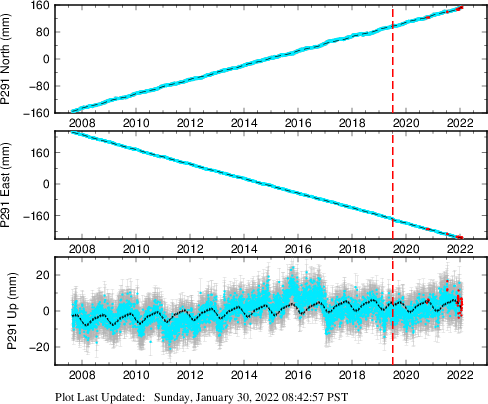 These results are preliminary. The station positions are unchecked and should not be used for any engineering applications. There may be errors in the antenna heights. The velocities are very dependent on the length of the span of observations. The presence of outliers (errant observations) sometimes contaminates the velocities.