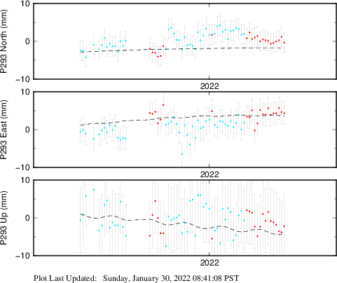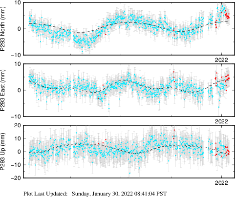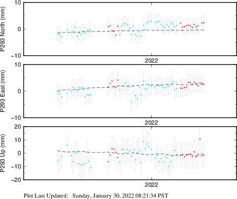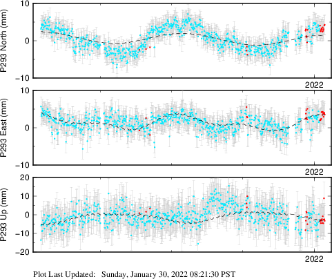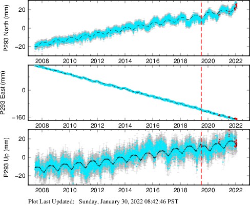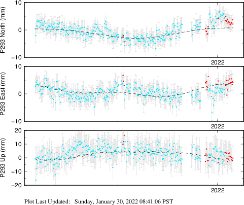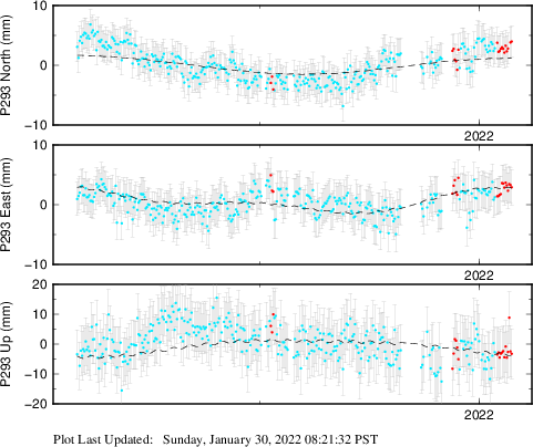 These results are preliminary. The station positions are unchecked and should not be used for any engineering applications. There may be errors in the antenna heights. The velocities are very dependent on the length of the span of observations. The presence of outliers (errant observations) sometimes contaminates the velocities.