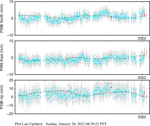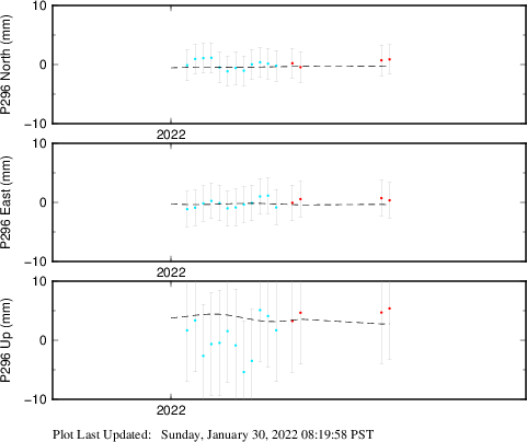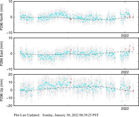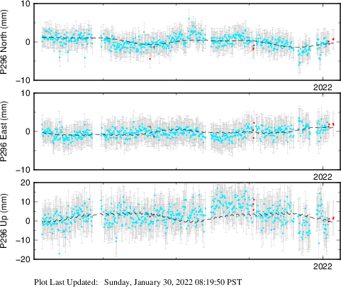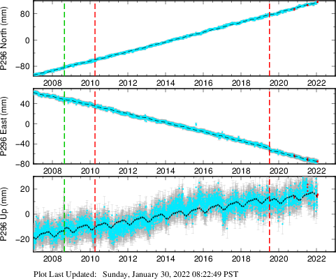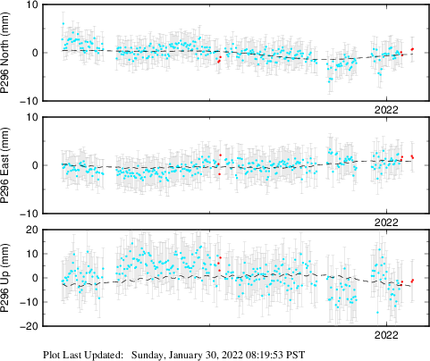These results are preliminary. The station positions are unchecked and should not be used for any engineering applications. There may be errors in the antenna heights. The velocities are very dependent on the length of the span of observations. The presence of outliers (errant observations) sometimes contaminates the velocities.