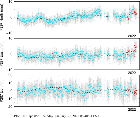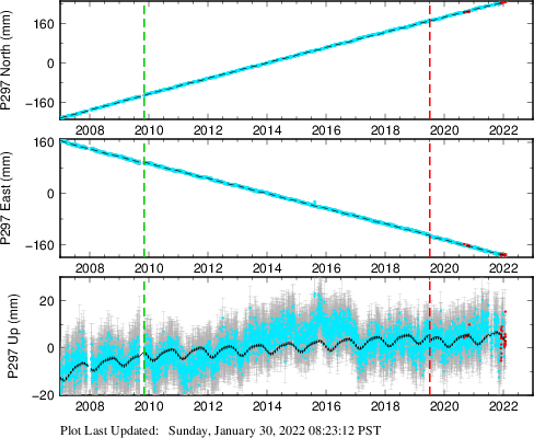 These results are preliminary. The station positions are unchecked and should not be used for any engineering applications. There may be errors in the antenna heights. The velocities are very dependent on the length of the span of observations. The presence of outliers (errant observations) sometimes contaminates the velocities.