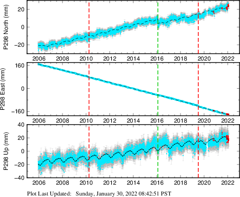 | Decimal date | N offset (mm) | N uncertainty (mm) | E offset (mm) | E uncertainty (mm) | U offset (mm) | U uncertainty (mm) | Type | Earthquake magnitude | Earthquake information | Distance from epicenter (km) | |