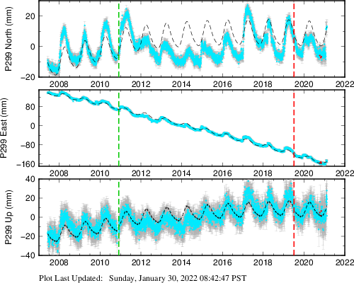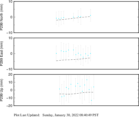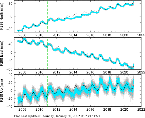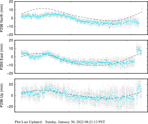 These results are preliminary. The station positions are unchecked and should not be used for any engineering applications. There may be errors in the antenna heights. The velocities are very dependent on the length of the span of observations. The presence of outliers (errant observations) sometimes contaminates the velocities.