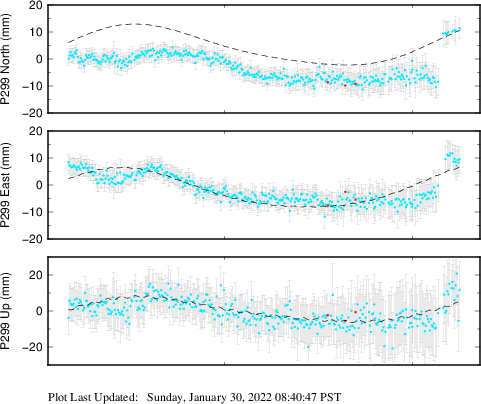 | Decimal date | N log amplitude (mm) | N log amplitude standard deviation (mm) | N time constant (years) | E log amplitude (mm) | E log amplitude standard deviation (mm) | E time constant (years) | U log amplitude (mm) | U log amplitude standard deviation (mm) | U time constant (years) | |