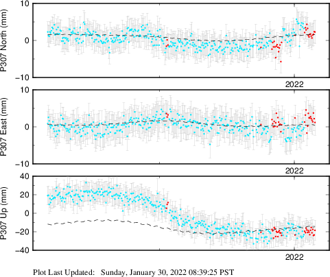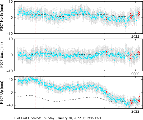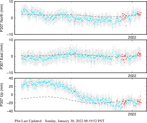 | Decimal date | N offset (mm) | N uncertainty (mm) | E offset (mm) | E uncertainty (mm) | U offset (mm) | U uncertainty (mm) | Type | Earthquake magnitude | Earthquake information | Distance from epicenter (km) | |
