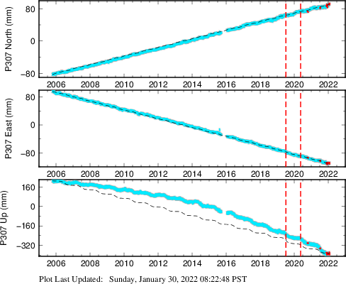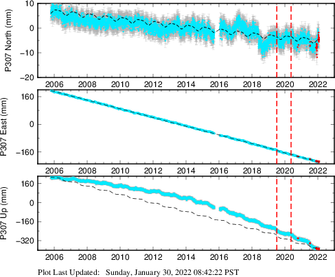 These results are preliminary. The station positions are unchecked and should not be used for any engineering applications. There may be errors in the antenna heights. The velocities are very dependent on the length of the span of observations. The presence of outliers (errant observations) sometimes contaminates the velocities.