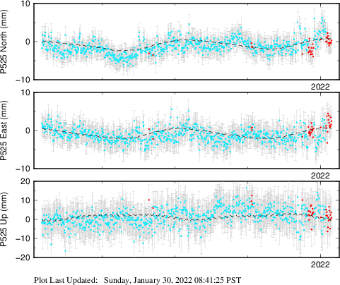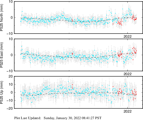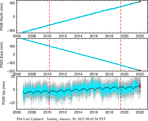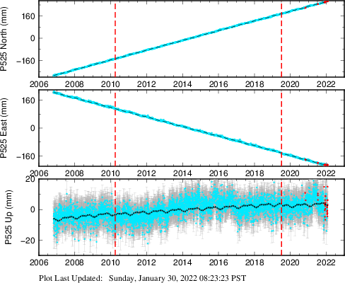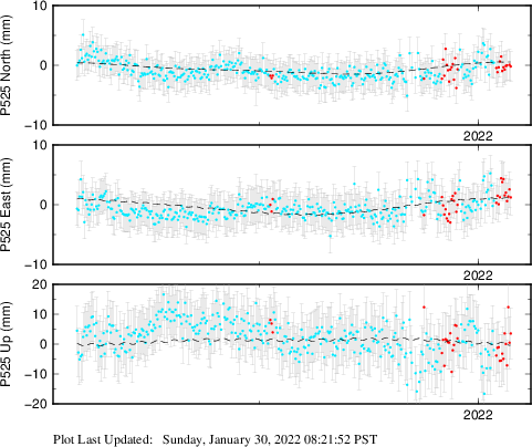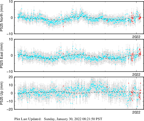 These results are preliminary. The station positions are unchecked and should not be used for any engineering applications. There may be errors in the antenna heights. The velocities are very dependent on the length of the span of observations. The presence of outliers (errant observations) sometimes contaminates the velocities.