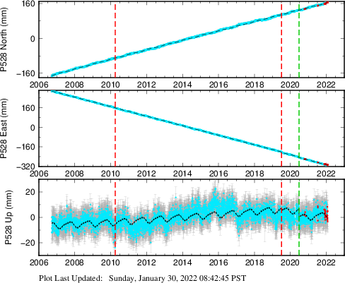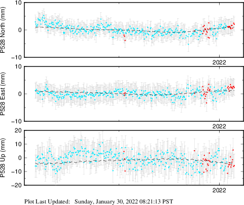 | Decimal date | N offset (mm) | N uncertainty (mm) | E offset (mm) | E uncertainty (mm) | U offset (mm) | U uncertainty (mm) | Type | Earthquake magnitude | Earthquake information | Distance from epicenter (km) | |