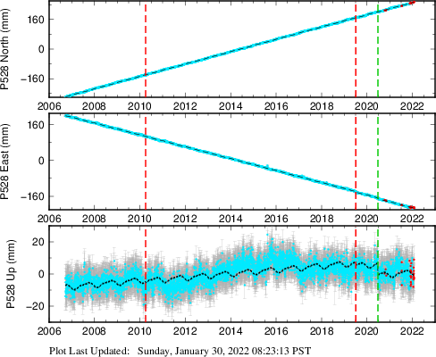 These results are preliminary. The station positions are unchecked and should not be used for any engineering applications. There may be errors in the antenna heights. The velocities are very dependent on the length of the span of observations. The presence of outliers (errant observations) sometimes contaminates the velocities.