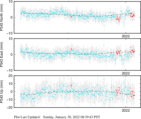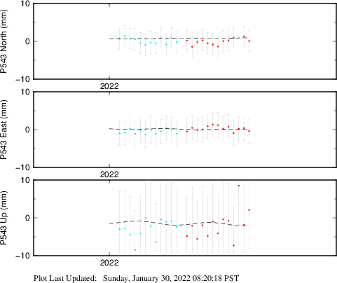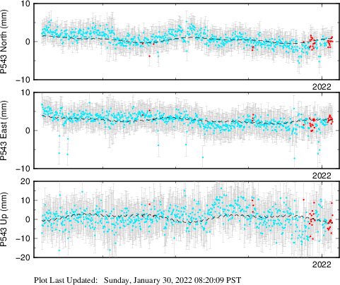 These results are preliminary. The station positions are unchecked and should not be used for any engineering applications. There may be errors in the antenna heights. The velocities are very dependent on the length of the span of observations. The presence of outliers (errant observations) sometimes contaminates the velocities.