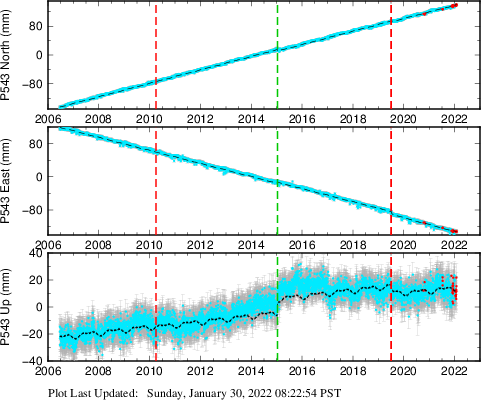 | Decimal date | N offset (mm) | N uncertainty (mm) | E offset (mm) | E uncertainty (mm) | U offset (mm) | U uncertainty (mm) | Type | Earthquake magnitude | Earthquake information | Distance from epicenter (km) | |