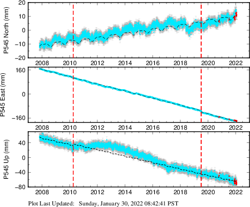 | Decimal date | N offset (mm) | N uncertainty (mm) | E offset (mm) | E uncertainty (mm) | U offset (mm) | U uncertainty (mm) | Type | Earthquake magnitude | Earthquake information | Distance from epicenter (km) | |