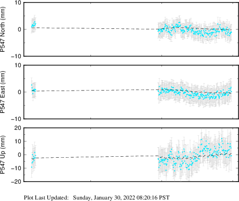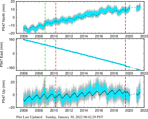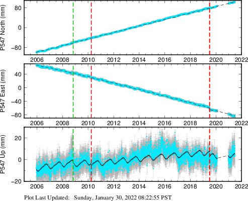 | Decimal date | N offset (mm) | N uncertainty (mm) | E offset (mm) | E uncertainty (mm) | U offset (mm) | U uncertainty (mm) | Type | Earthquake magnitude | Earthquake information | Distance from epicenter (km) | |