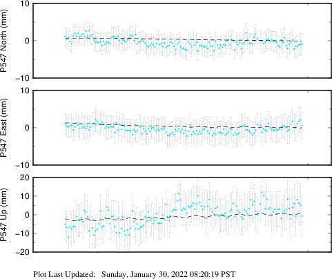 These results are preliminary. The station positions are unchecked and should not be used for any engineering applications. There may be errors in the antenna heights. The velocities are very dependent on the length of the span of observations. The presence of outliers (errant observations) sometimes contaminates the velocities.