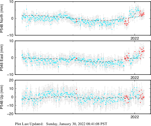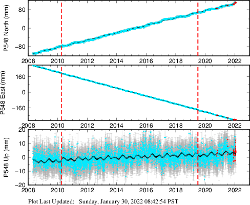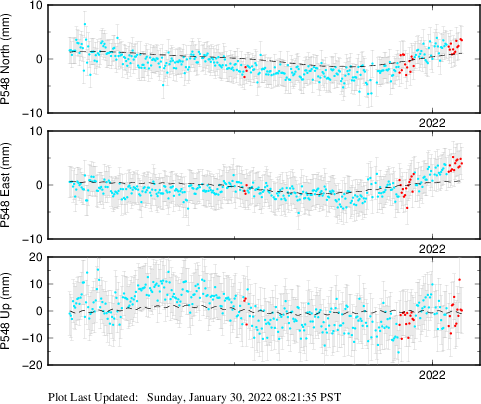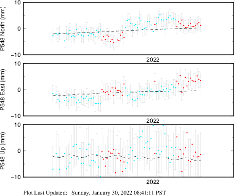 | Decimal date | N offset (mm) | N uncertainty (mm) | E offset (mm) | E uncertainty (mm) | U offset (mm) | U uncertainty (mm) | Type | Earthquake magnitude | Earthquake information | Distance from epicenter (km) | |
