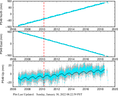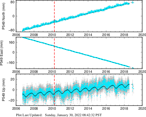 | Decimal date | N offset (mm) | N uncertainty (mm) | E offset (mm) | E uncertainty (mm) | U offset (mm) | U uncertainty (mm) | Type | Earthquake magnitude | Earthquake information | Distance from epicenter (km) | |