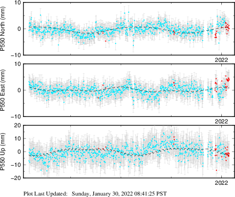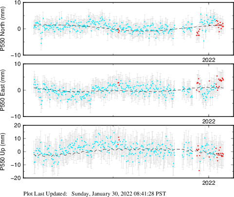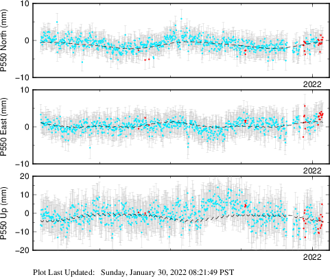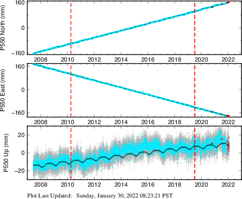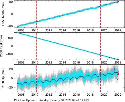 These results are preliminary. The station positions are unchecked and should not be used for any engineering applications. There may be errors in the antenna heights. The velocities are very dependent on the length of the span of observations. The presence of outliers (errant observations) sometimes contaminates the velocities.