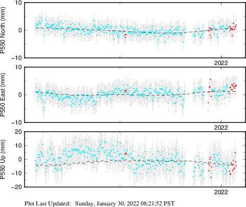 | Decimal date | N offset (mm) | N uncertainty (mm) | E offset (mm) | E uncertainty (mm) | U offset (mm) | U uncertainty (mm) | Type | Earthquake magnitude | Earthquake information | Distance from epicenter (km) | |