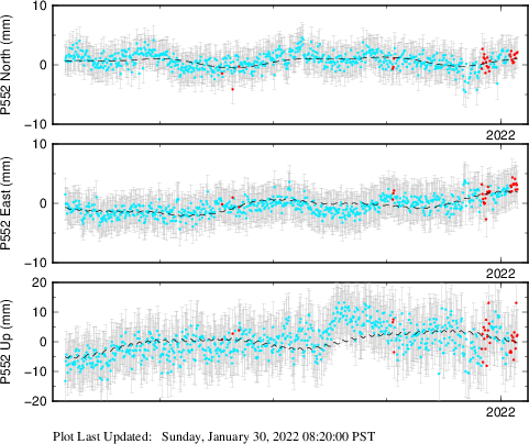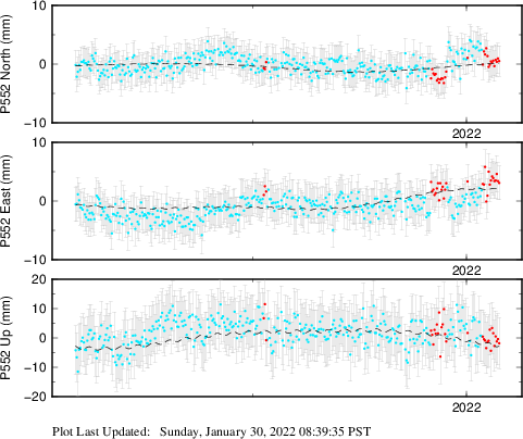 | Decimal date | N offset (mm) | N uncertainty (mm) | E offset (mm) | E uncertainty (mm) | U offset (mm) | U uncertainty (mm) | Type | Earthquake magnitude | Earthquake information | Distance from epicenter (km) | |